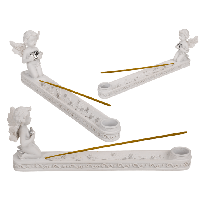 Incense stick holder, Angel with crystal heart, Made of Polyresin, ca. 25,5 x 5,5 x 9 cm