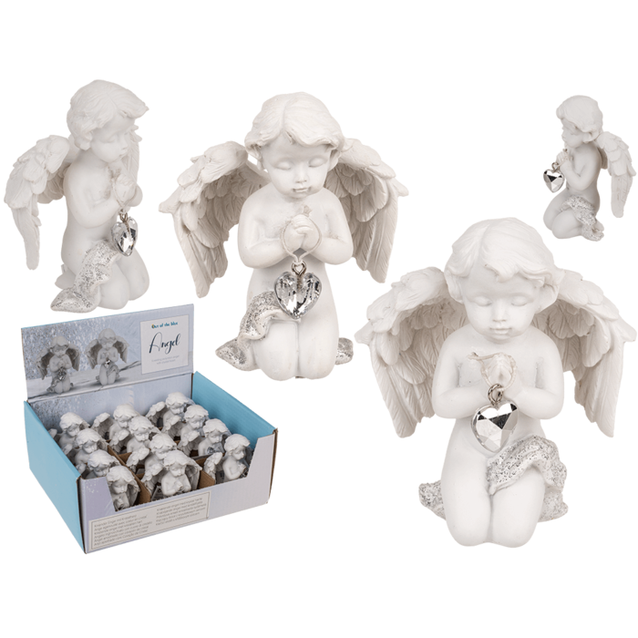 Kneeling polyresin angel with crystal heart, ca. 6 x 7,5 cm
