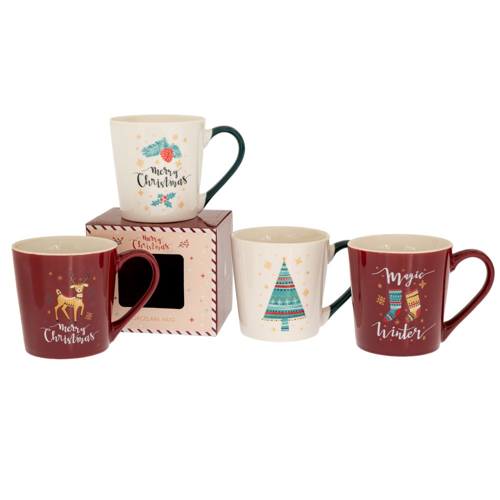 ΚΕΡΑΜΙΚΗ ΚΟΥΠΑ ΜΕ ΧΡΙΣΤΟΥΓΕΝΝΙΑΤΙΚΕΣ ΦΙΓΟΥΡΕΣ 4 ΣΧΕΔΙΑ ΣΕ ΚΟΥΤΙ 400ml CHRISTMAS
