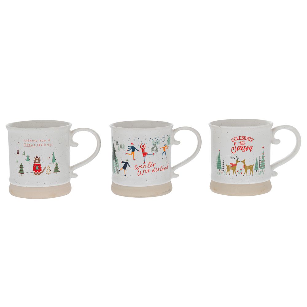 ΛΕΥΚΗ ΚΕΡΑΜΙΚΗ ΚΟΥΠΑ ΜΕ ΧΡΙΣΤΟΥΓΕΝΝΙΑΤΙΚΕΣ ΦΙΓΟΥΡΕΣ 3 ΣΧΕΔΙΑ 400ml CHRISTMAS
