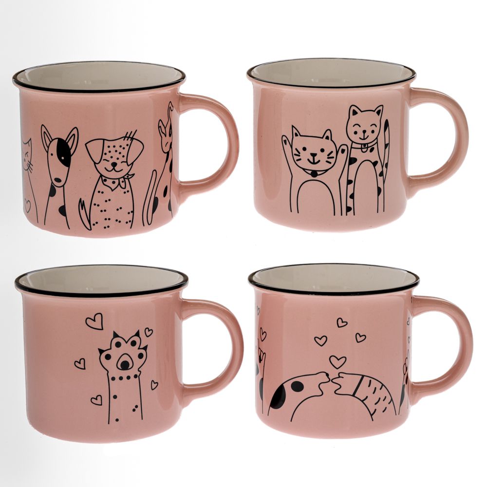ΡΟΖ ΚΕΡΑΜΙΚΗ ΚΟΥΠΑ ΜΕ ΦΙΓΟΥΡΑ ΓΑΤΑΣ & ΣΚΥΛΟΥ 460ml ΣΕ 4 ΣΧΕΔΙΑ (10Χ9ΕΚ) DECO